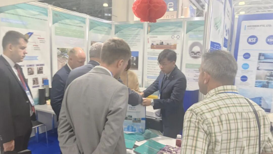 此次展会上,我公司带来了柔性内衬(压力管网)、热塑内衬(FIPP)、紫外光固化内衬(CIPP)等非开挖翻新、修复材料及相关工艺。通过对材料和工艺的讲解,以及对典型案例的展示,展位吸引了众多国外友人的关注。
